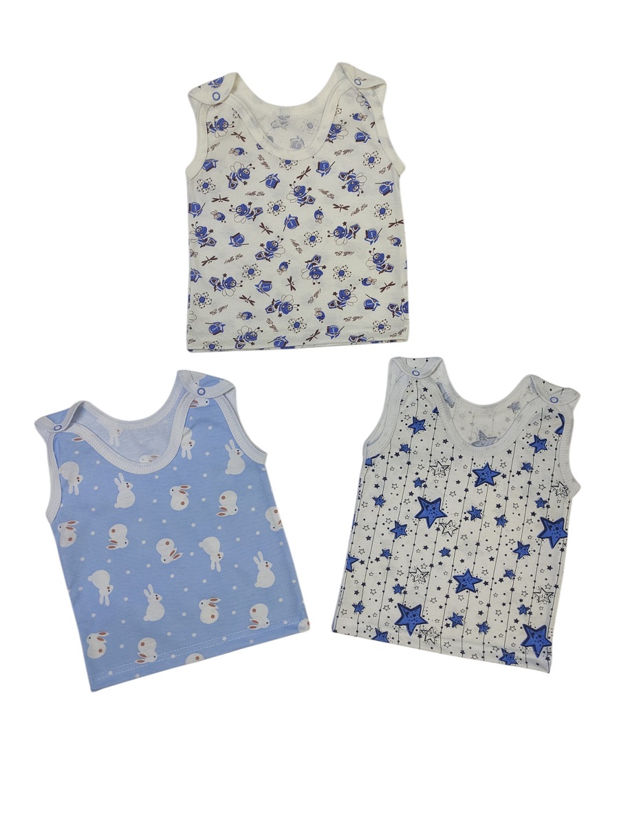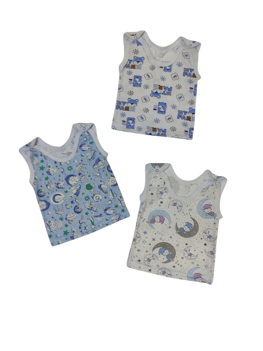 Маечка детская выполнена из 100% хлопка, с кнопочкой на каждом плече.