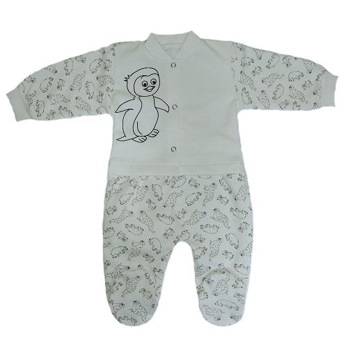 Комбинезон с длинным рукавом, без воротничка, спереди имитация кофты и ползунков, сзади комбинезон.